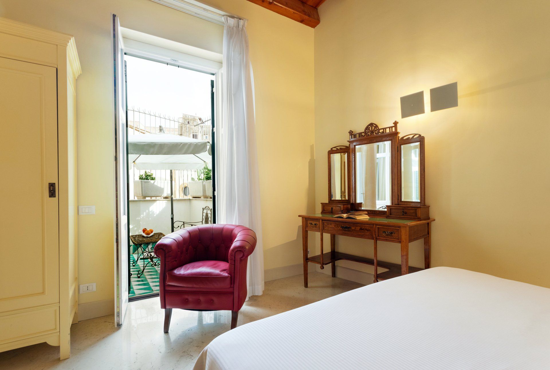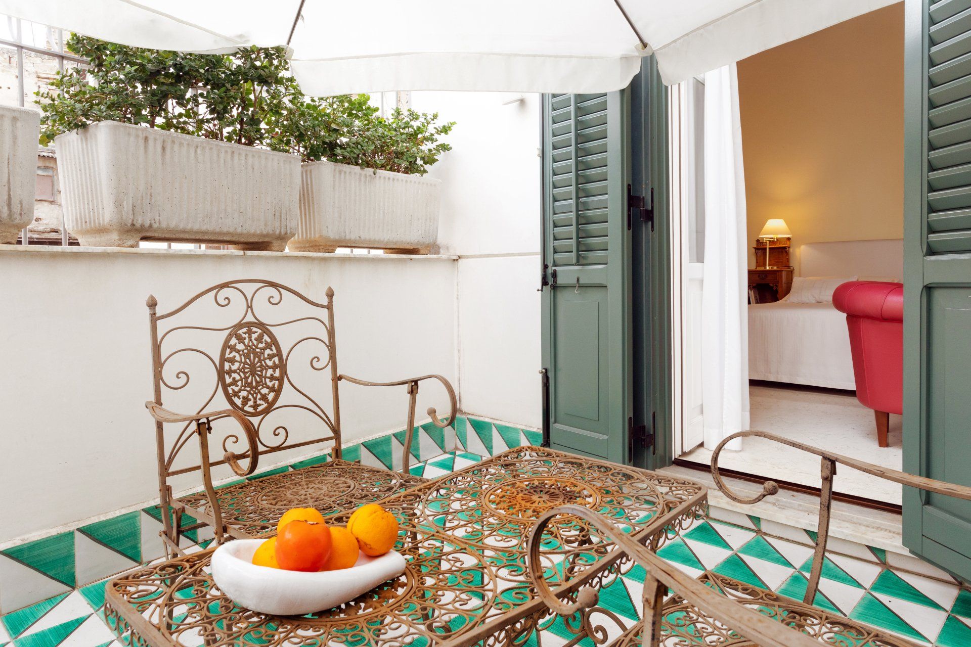 L'una con terrazzo, da cui si possono ammirare i tetti del centro storico e la cupola della chiesa del Carmine, l’altra, si pregia di due balconi che guardano sul cortile interno all’hotel e sui tetti della Palermo antica.