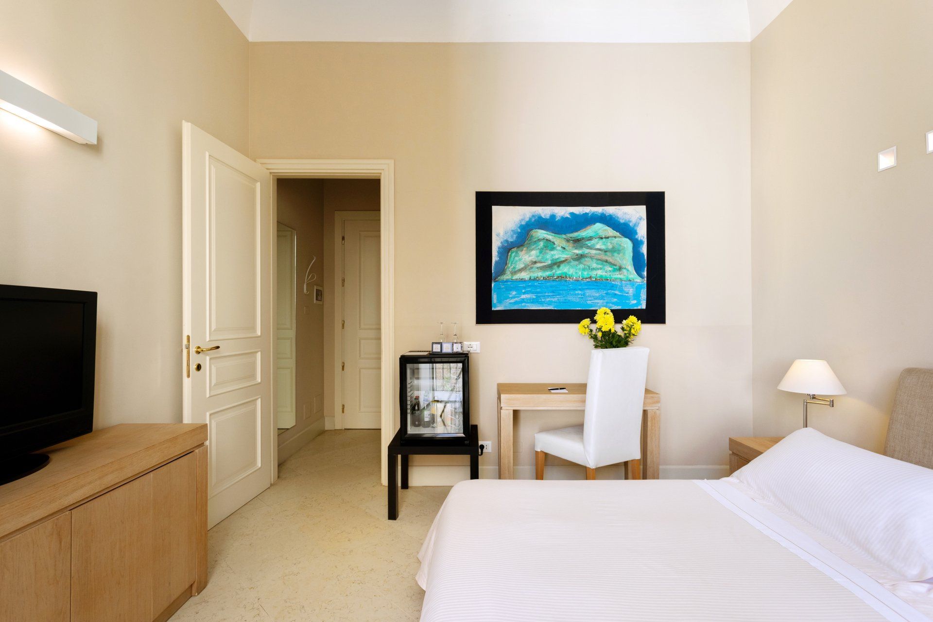 Una sistemazione comoda ed accogliente con pavimenti in marmo o in parquet pregiati, arricchita da tele d’autore e ceramiche siciliane.