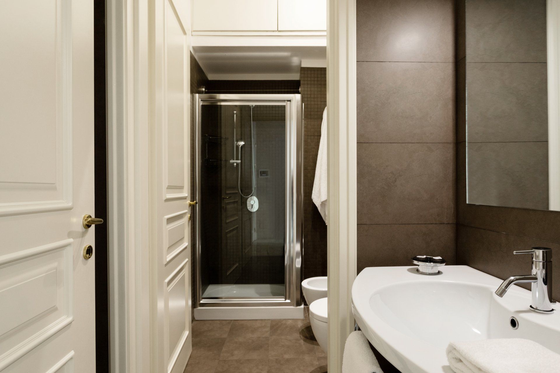 Il bagno in camera dispone di doccia, asciugacapelli, biancheria di alta qualità e set di cortesia.