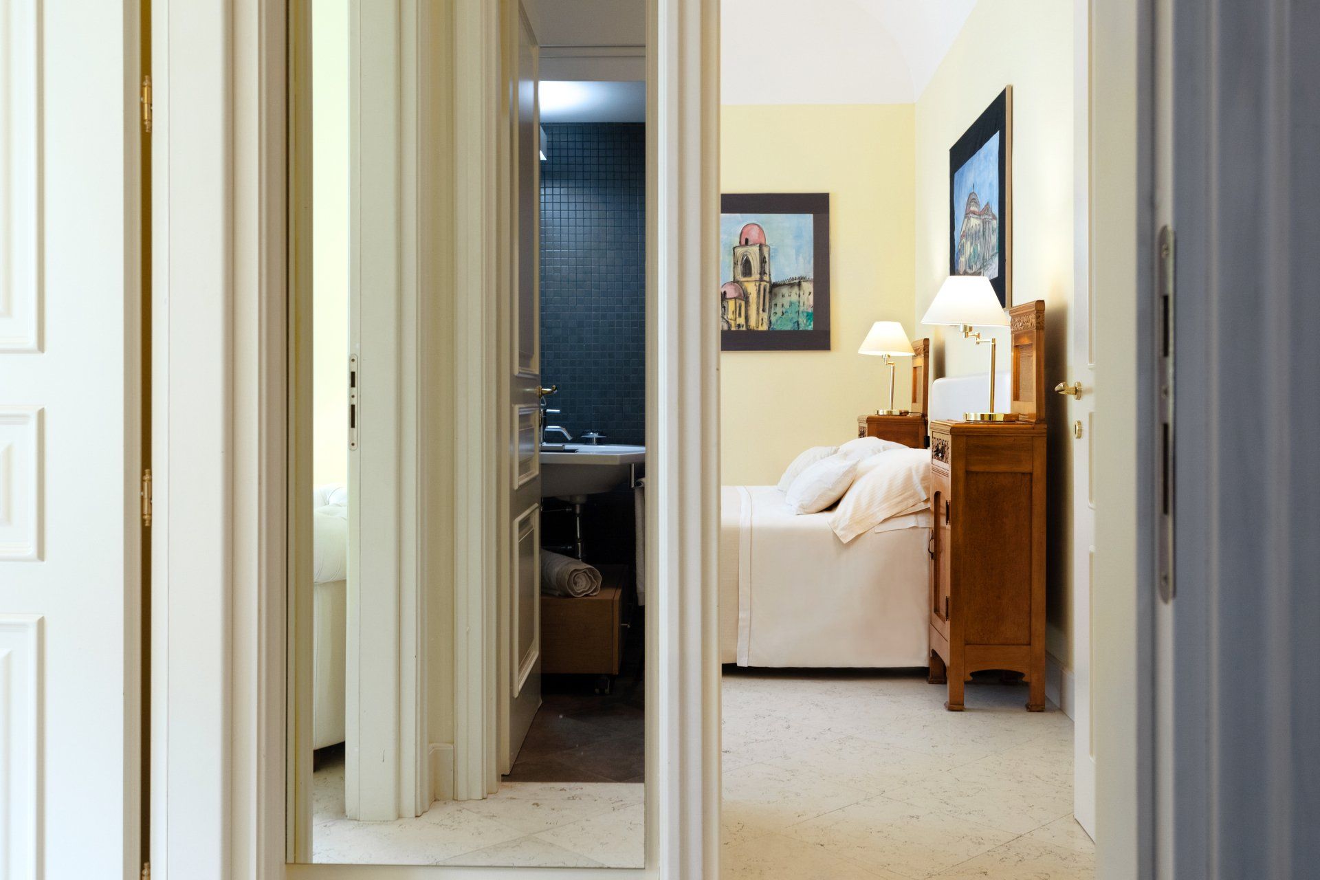 Palazzo Brunaccini is a 17-room boutique hotel with a restaurant, an interior courtyard and a meeting room. Our maison is located in the heart of the historic center of Palermo. It was belonged to Princess Lucrezia Brunaccini and thanks to a careful work of recovery, today is a modern structure where the charm of history and the elegance of design find a perfect and wise harmony. The hospitality and professionalism of the staff, the strategic location behind the market of Ballarò and a short walk distance from the main UNESCO sites of Palermo, make this hotel the ideal choice for those who want to visit the city on foot, discovering the most vital and cosmopolitan part. Comfort, modernity and small luxuries: the chic and romantic details, the Deluxe rooms with Jacuzzi and our creative traditional cuisine make Palazzo Brunaccini the perfect hotel also for a romantic getaway or for honeymooners.